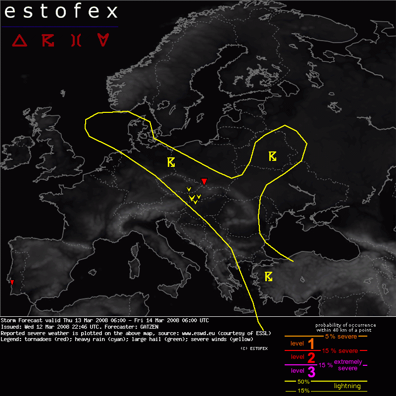 Lehet én látom rosszul,de az Estofex színvonala mostanában nagyon lesüllyedt:O,Kb annyit csinálnak hogy egy jó nagy területet körbehúznak aztán csak lesz valahol valaminevet