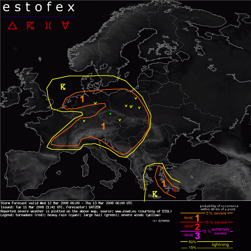 Kulcsfontosságúnak lehet találni a frontális konvergencia kérdését... én a leghevesebb eseményekre Némteroszág déli részén és Ausztriában számítok, ezzel együtt talán északnyugaton is.... a többi helyen én nem várok említésre méltó zivatart... valószínûleg az estofex se ezért adta ki az 1-es riasztást, hanem az esetleges szél miatt.