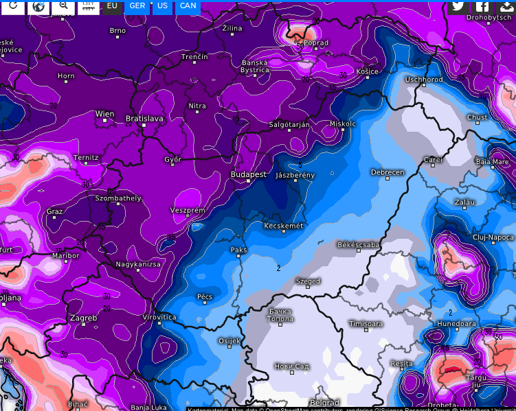 Hihetetlen, hogy a közelben mennyi hideg lenne, de semmit sem érne, a Kárpátok megint megakadályozná a hideg beáramlását szokás szerint, de sebaj, ez a 22-ei 12 fok már egész kellemes lenne ha már ez a tél csak szenvedni tud: Link