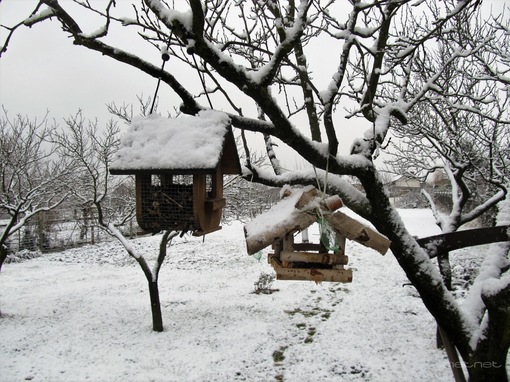 2. kerület, Kurucles. Aprószemű, közepesen sűrű hóesés. Az etetőknél lassan aktivizálódnak a szárnyas vendégek. Lassan vége a havazásnak.