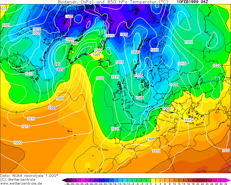 Teljesen más a szitu . 1999 feb. Skandinávia feletti tekno sarkvidéki / szibériai levegőt forgatott be onmagába, és európa nagy részére.