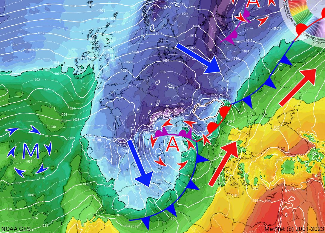A hét közepén Európa nyugati felét újabb adag sarkvidéki eredetű levegő árasztja el. Ez a hideg levegő bezúdul a Földközi-tenger nyugati medencéjébe, és ott mediterrán ciklont generál a Genovai-öböl felett. Ez nagyban befolyásolja a Kárpát-medence és hazánk időjárását a hét utolsó napjaiban.