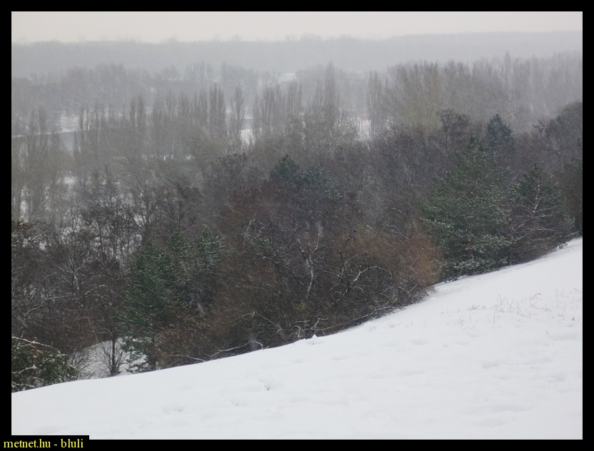 | Leírás: A havazás ekkor már gyengülõ félben volt. A hóréteg 6 cm. | |