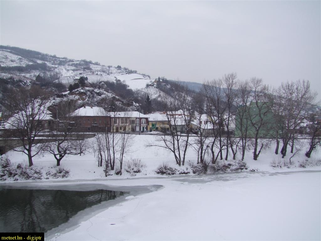 | Leírás: Med.ciklon a tokaji-hegyen, Tokajban és a Tiszán. A Bodrog és Tisza találkozásánál áll a jég, a híd után már nem, bütykös hattyúk úszkálnak. | |