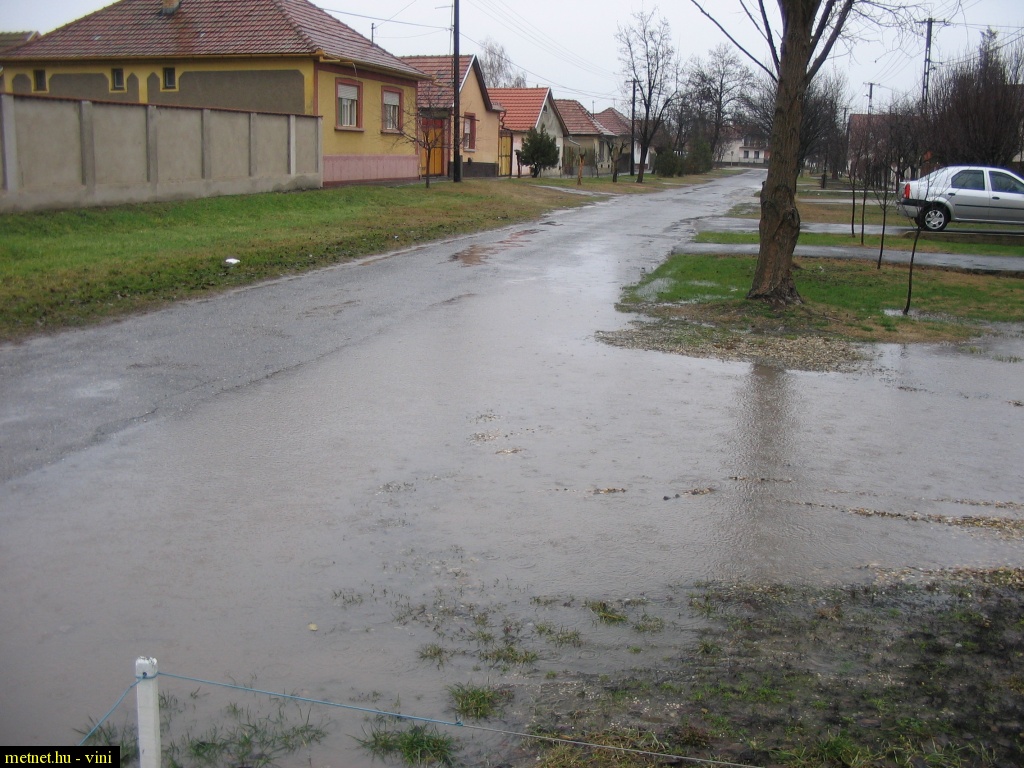 | Leírás: Egy ceglédi kis utcában az úttest felét víz borítja az elmúlt órák intenzív 2,1mm/h. esõzésének köszönhetõen. | |