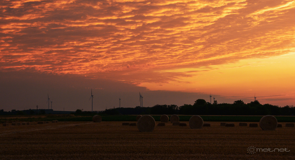 | Leírás: Napkelte Bőny mellett hidegfront érkező felhőzetével | |