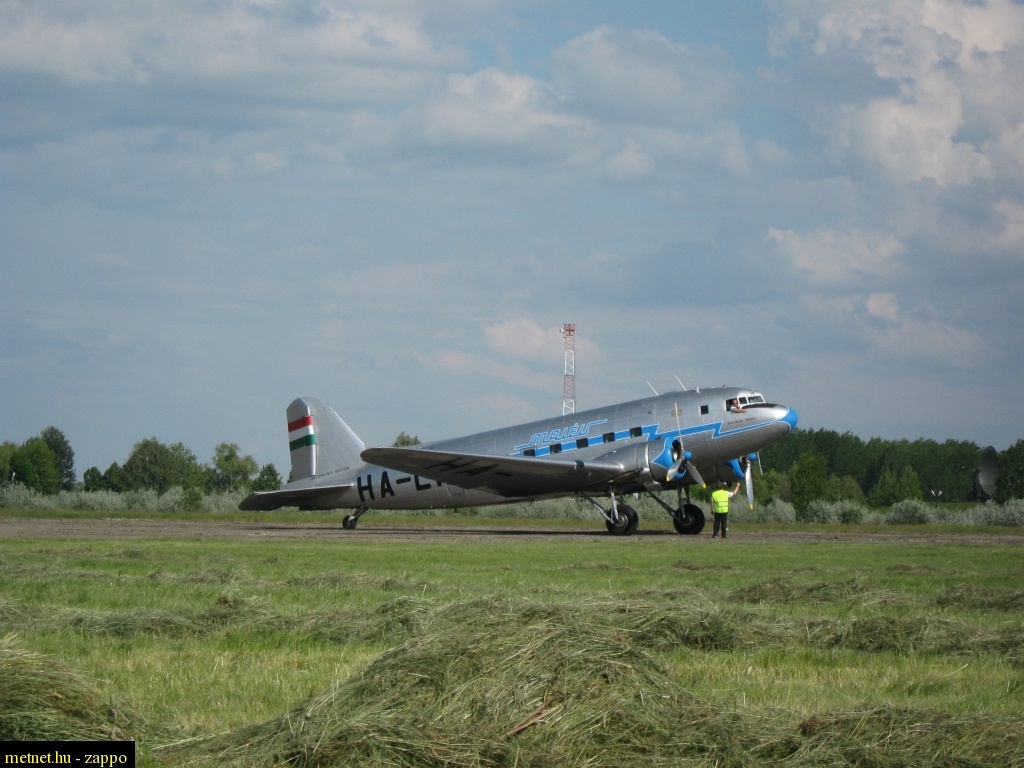 | Leírás: Éljen soká a 100 éves magyar repülés! A legendás 61 éves LI-2-es Debrecenben járt. Egyedüli példány a világon! |