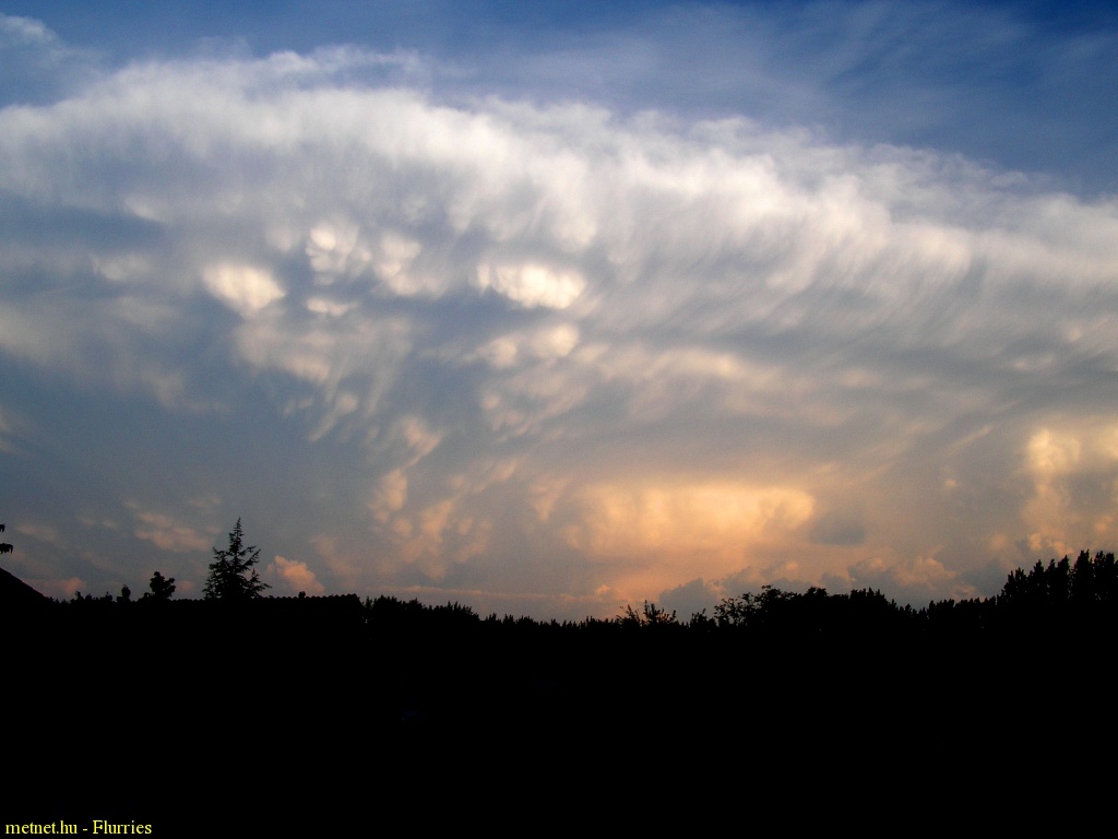 | Leírás: Gyõrtõl délre tomboló szupercella látványos üllõje. | |