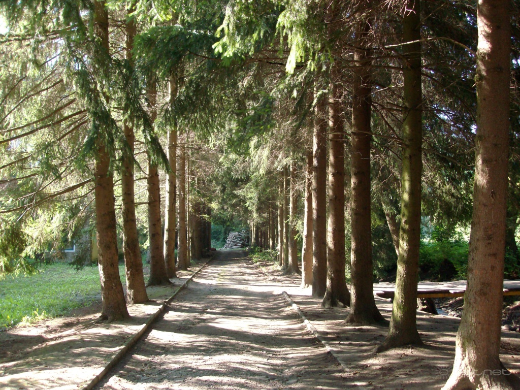 | Leírás: Fenyõsor a fogadó udvarán | |