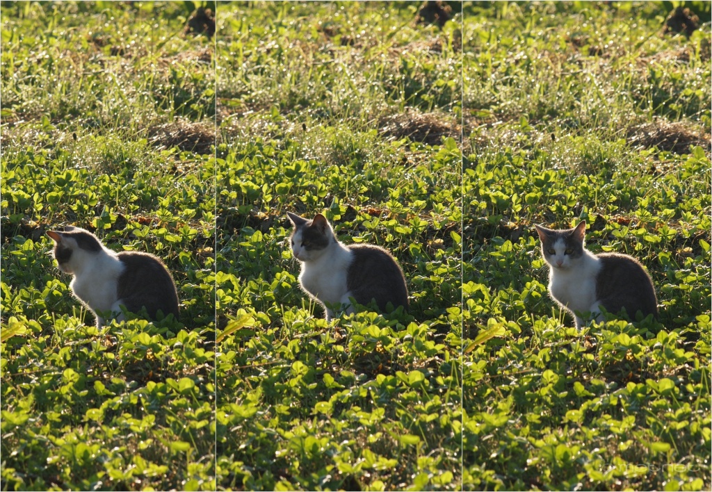 | Leírás: Szomszédos üres telken reggel vadászó macsek. | |