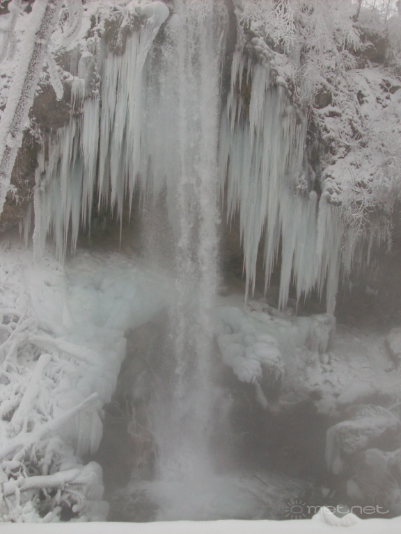 Leírás: A félig befagyott lillafüredi vízesés.