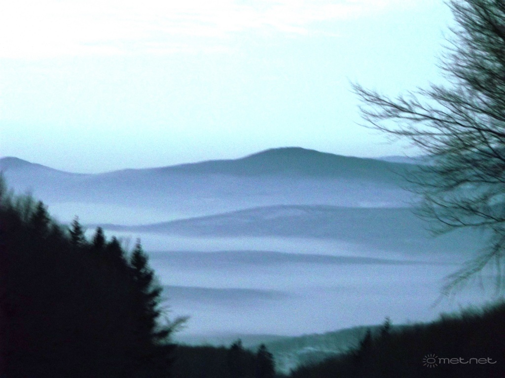 2012-12-24 19:48:27  -  Kerekrobi Szépen elkopott az inverzió. A kép alapján kb. 400 m-en lehet a határa a maradék hideg levegõnek.