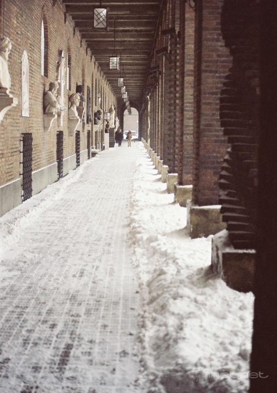 Leírás: Árkádok a Dóm téren: itt ritkán van hó.