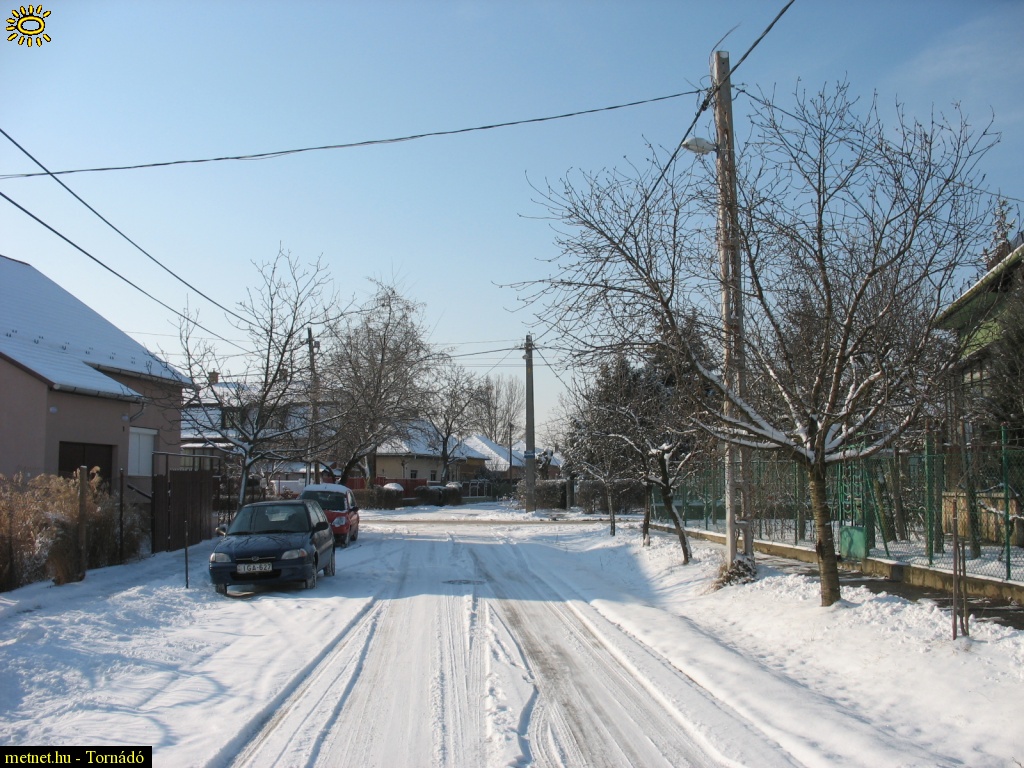 | Leírás: Az éjszakai hóvihar és az elõtte lévõ 35 órás havazás eredménye. (10-12 cm hó) | |