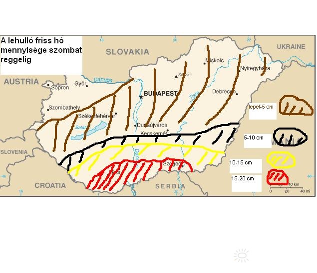 | Leírás: A pénteken érkezõ mediterrán ciklonból lehulló friss hó mennyisége szombat reggelig - várakozásaim szerint. | |