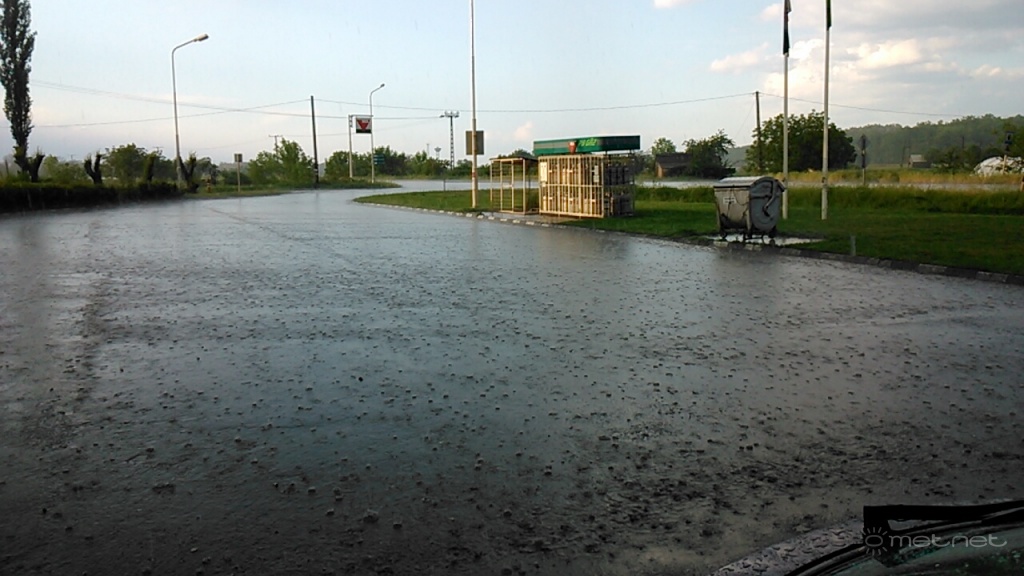 | Leírás: Felhõszakadás, jégesõvel Kunszentmárton déli részén. | |