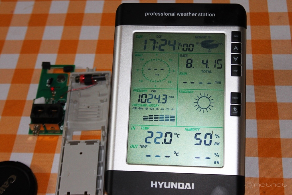 | Leírás: WSP2080R WIND két és fél órával a kültéri egységbõl való elemkivétel után. Még mindig jelzi. hogy veszi a DCF jelét. Elem nélkül nincs jel. | |