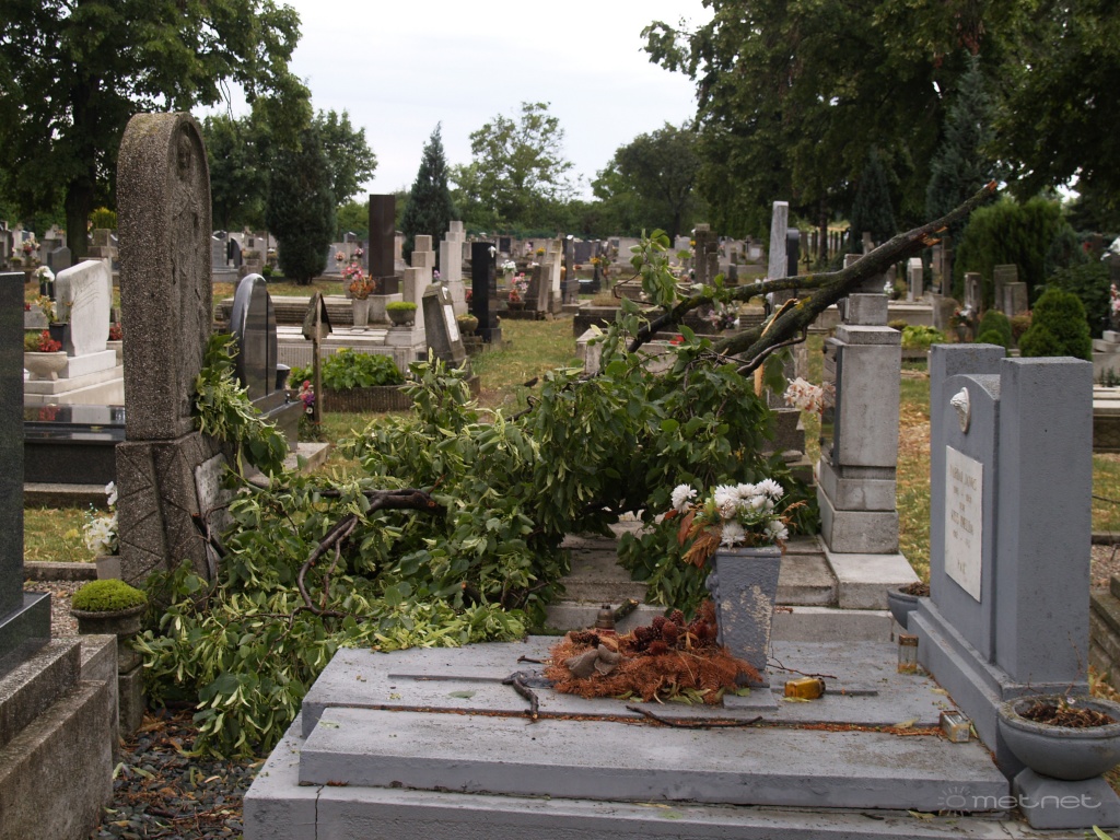 | Leírás: Viharkárok a temetõben: Letört faágak | |