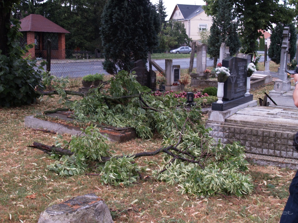 | Leírás: Viharkárok a temetõben: Letört faágak | |