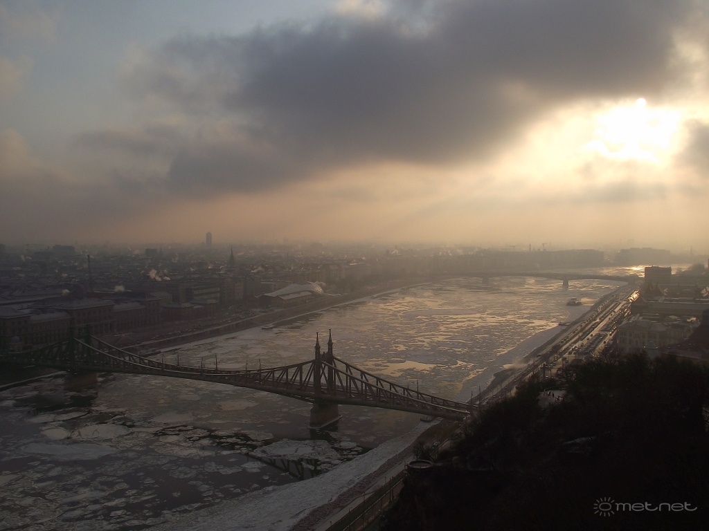 Leírás: Stratus feloszlása a zajló Dunával.
