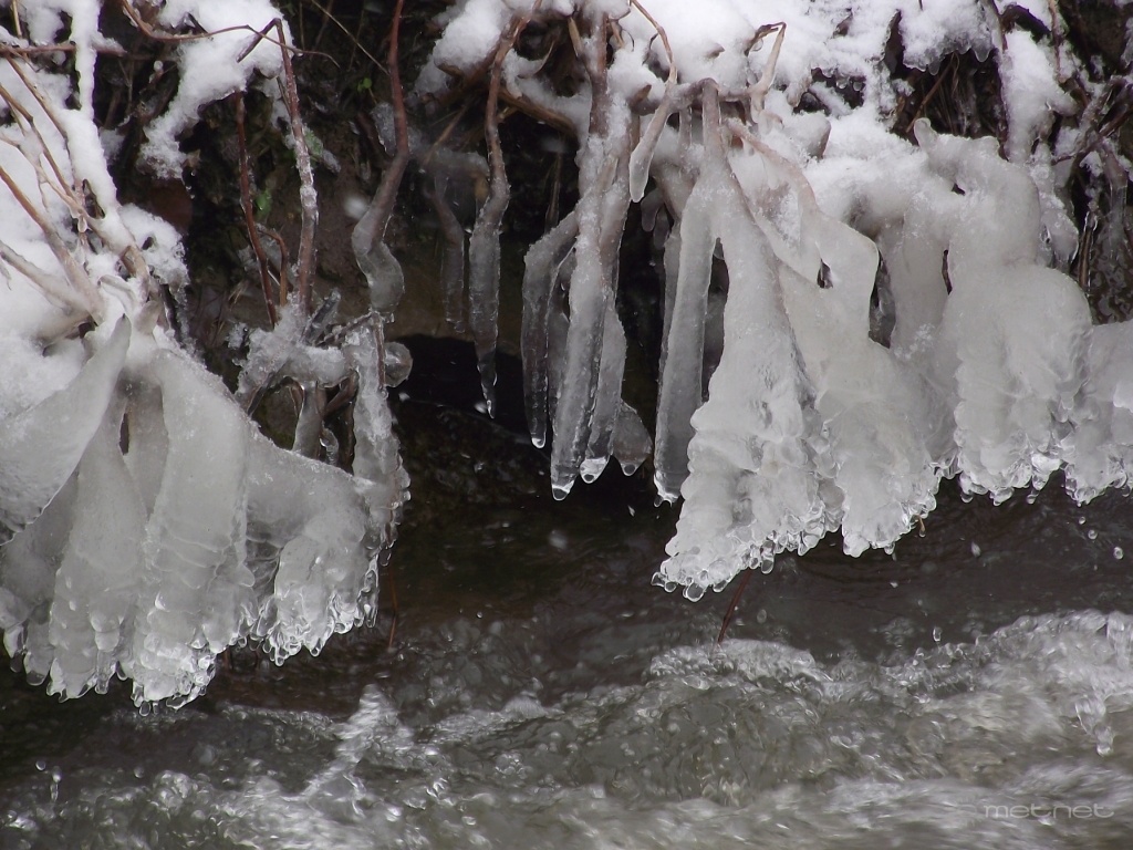 | Leírás: Jégképződmények a Gyöngyös-patak partján. | |