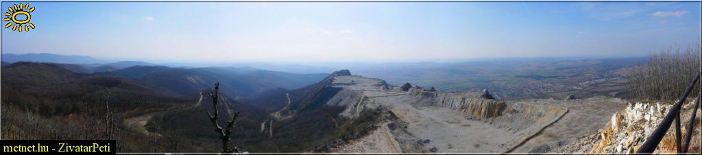 | Leírás: A kép a Bélkõ 815m magas csúcsán készült. Elõtérben a lebányászott hegytetõ. A bányászható becsült terület súlya kb. 170 millió tonna, ebbõl mintegy 19 millió tonnát hordtak el. | |