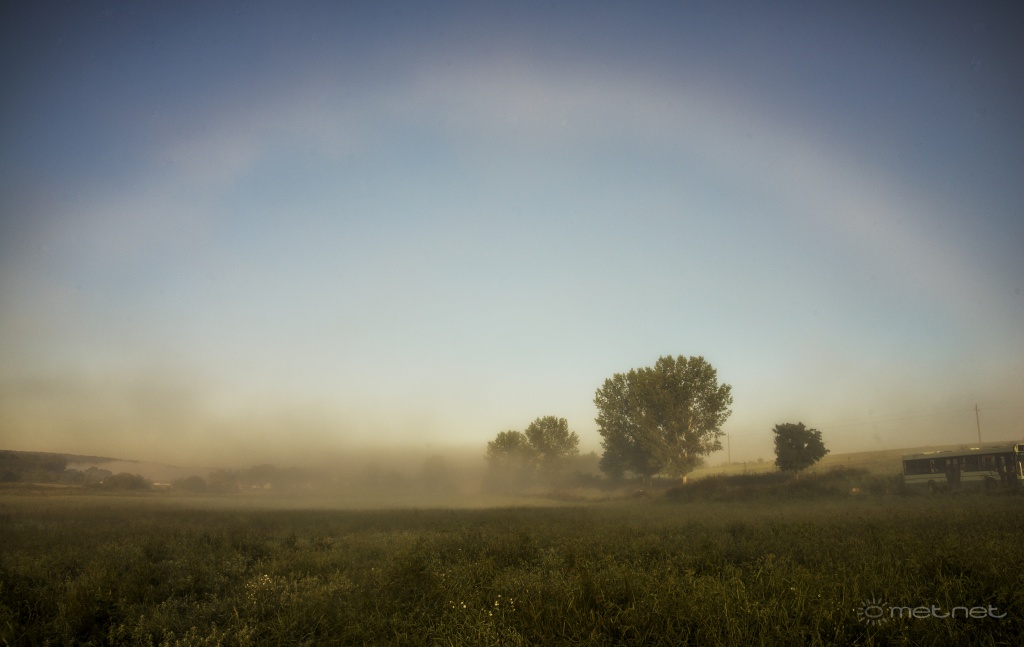 2019-09-04 21:23:52 - Kosakiss Hej, de szép ködszivárvány. Gratulálok! A 'köddzsinnek' a nap melege jóvoltából lassan-lassan elhagyják a pázsitot, majd a magasba emelkednek.