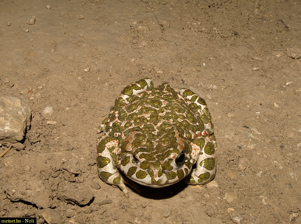 | Leírás: Zöld varangy (Bufo viridis) tegnap este csillagászásból hazafelé találkoztunk vele, egészen lemerevedett a zseblámpa fényétõl. Nagyon szép békuc volt! | |