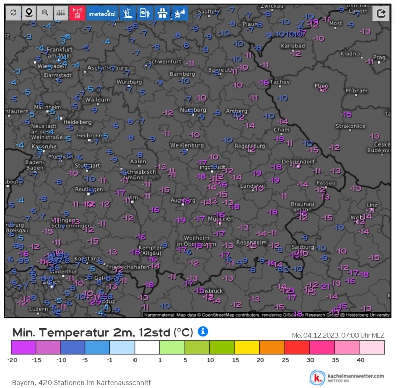 Hétfőn este melegfront érkezik, ami főként északra és keletre hoz csapadékot, zömében havat, de előfordul majd vegyes halmazállapotú csapadék is.