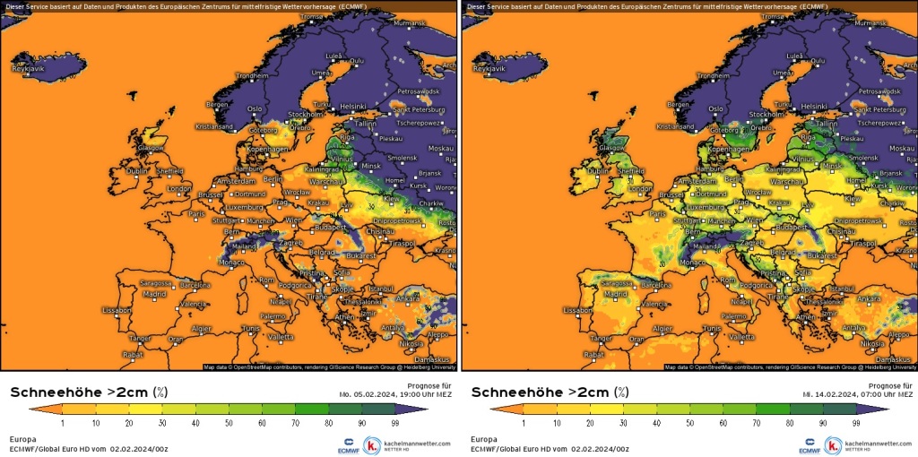 Hétfőn este melegfront érkezik, ami főként északra és keletre hoz csapadékot, zömében havat, de előfordul majd vegyes halmazállapotú csapadék is.