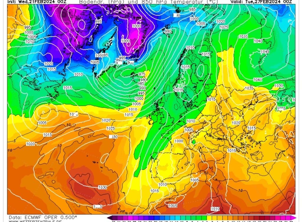 Hétfőn este melegfront érkezik, ami főként északra és keletre hoz csapadékot, zömében havat, de előfordul majd vegyes halmazállapotú csapadék is.