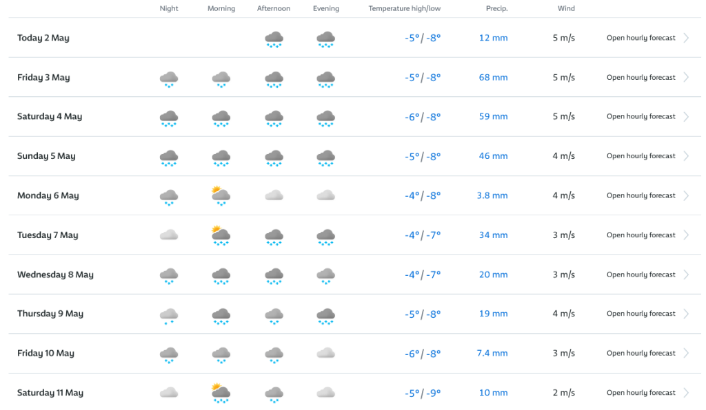 Hétfőn este melegfront érkezik, ami főként északra és keletre hoz csapadékot, zömében havat, de előfordul majd vegyes halmazállapotú csapadék is.