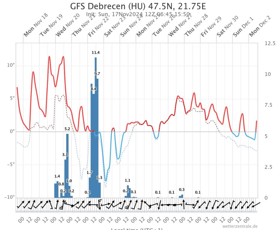 Hétfőn este melegfront érkezik, ami főként északra és keletre hoz csapadékot, zömében havat, de előfordul majd vegyes halmazállapotú csapadék is.