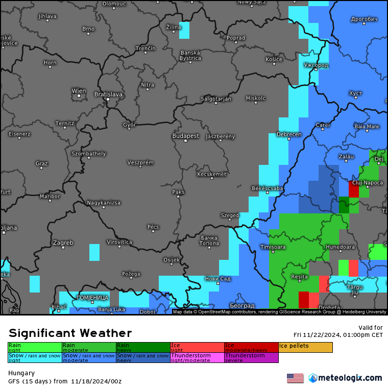 Hétfőn este melegfront érkezik, ami főként északra és keletre hoz csapadékot, zömében havat, de előfordul majd vegyes halmazállapotú csapadék is.