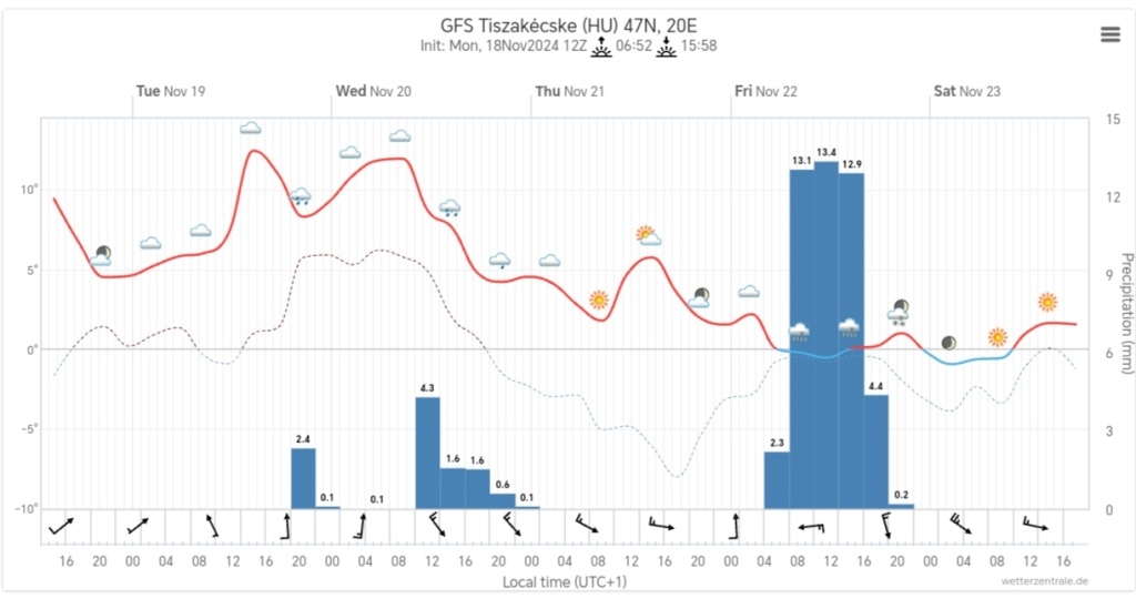 Hétfőn este melegfront érkezik, ami főként északra és keletre hoz csapadékot, zömében havat, de előfordul majd vegyes halmazállapotú csapadék is.