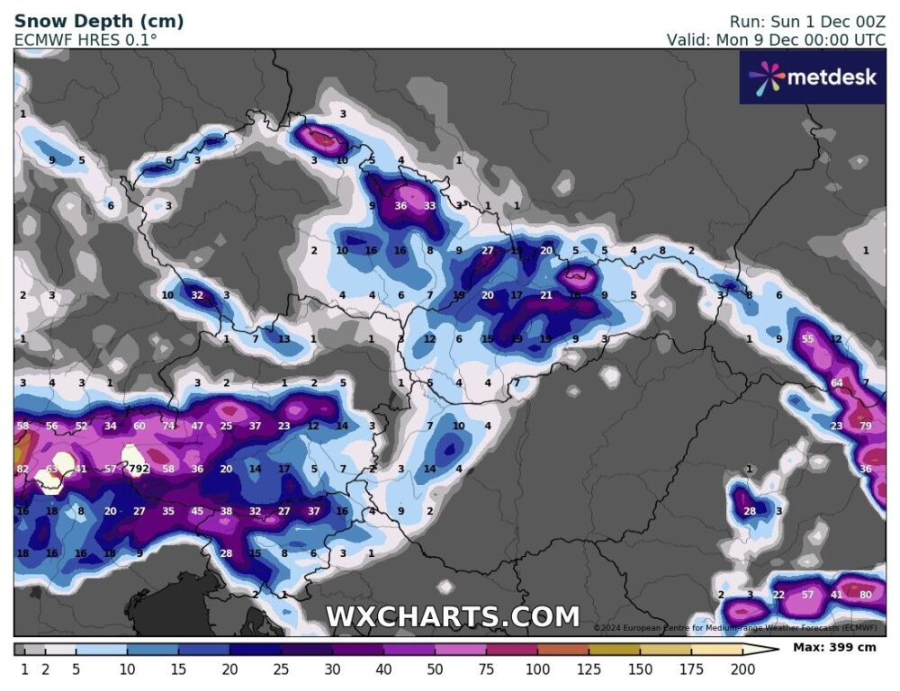 Hétfőn este melegfront érkezik, ami főként északra és keletre hoz csapadékot, zömében havat, de előfordul majd vegyes halmazállapotú csapadék is.