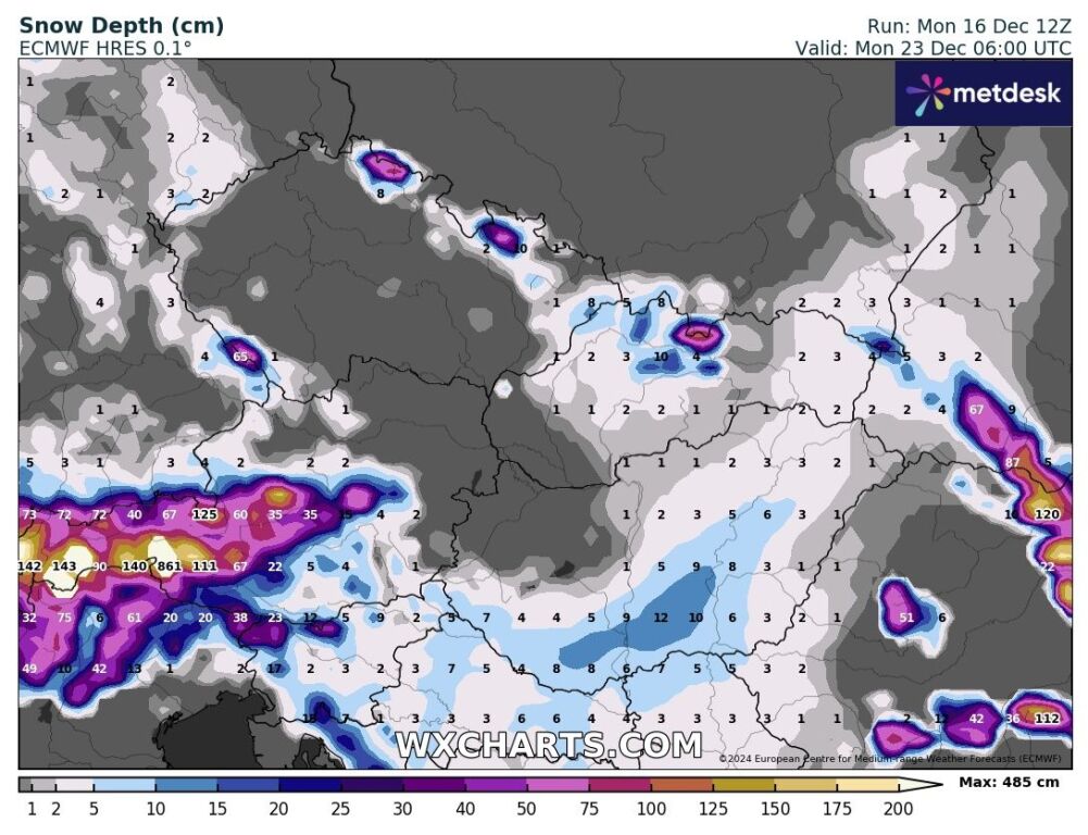 Hétfőn este melegfront érkezik, ami főként északra és keletre hoz csapadékot, zömében havat, de előfordul majd vegyes halmazállapotú csapadék is.