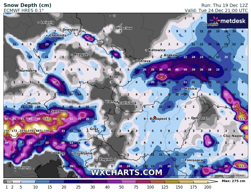Hétfőn este melegfront érkezik, ami főként északra és keletre hoz csapadékot, zömében havat, de előfordul majd vegyes halmazállapotú csapadék is.