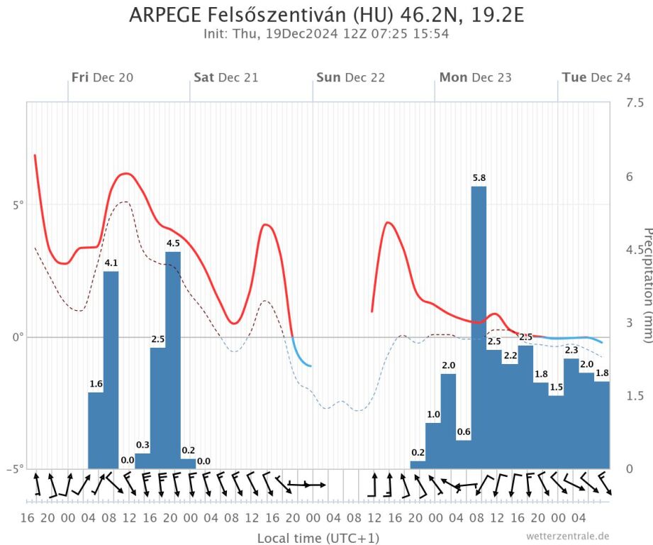 Hétfőn este melegfront érkezik, ami főként északra és keletre hoz csapadékot, zömében havat, de előfordul majd vegyes halmazállapotú csapadék is.