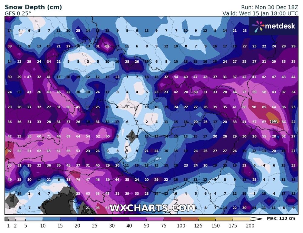 Hétfőn este melegfront érkezik, ami főként északra és keletre hoz csapadékot, zömében havat, de előfordul majd vegyes halmazállapotú csapadék is.