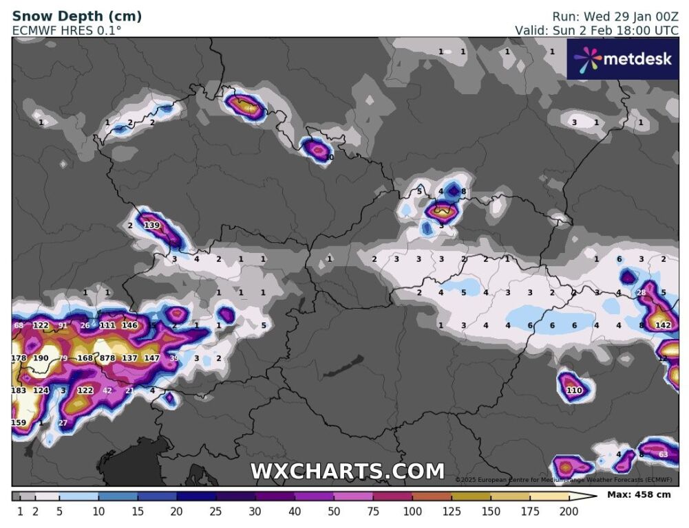 Hétfőn este melegfront érkezik, ami főként északra és keletre hoz csapadékot, zömében havat, de előfordul majd vegyes halmazállapotú csapadék is.
