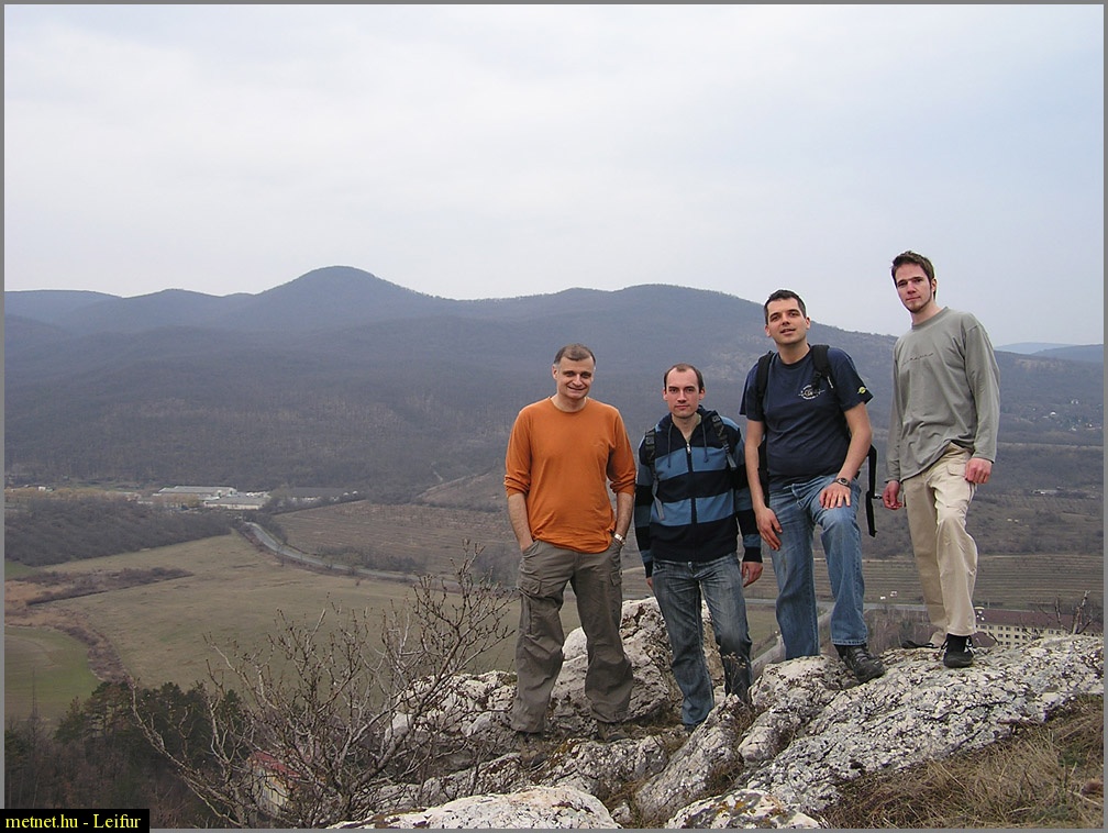 | Leírás: Rip közölte, ne vicceljünk már, tud õ fotózni, így kezébe adtam a gépet és õ ezt a képet készítette a Csobánka feletti Oszoly-orr nevû sziklán. Mi még a Pilisben álldogálunk, de a háttérben már a Visegrádi-hegység vonulatai látszanak. | |