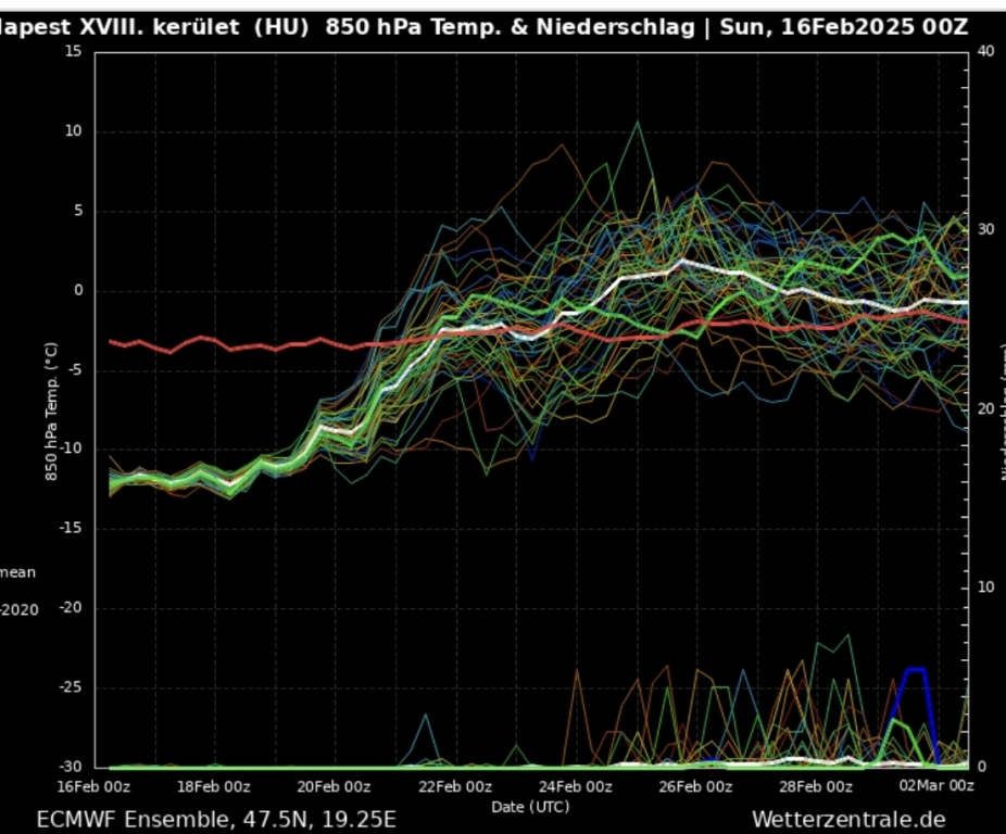 Hétfőn este melegfront érkezik, ami főként északra és keletre hoz csapadékot, zömében havat, de előfordul majd vegyes halmazállapotú csapadék is.