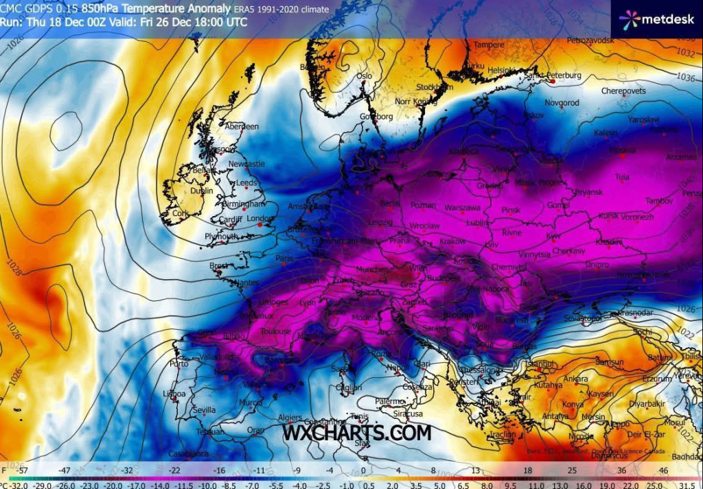 Hétfőn este melegfront érkezik, ami főként északra és keletre hoz csapadékot, zömében havat, de előfordul majd vegyes halmazállapotú csapadék is.