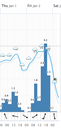 Hétfőn este melegfront érkezik, ami főként északra és keletre hoz csapadékot, zömében havat, de előfordul majd vegyes halmazállapotú csapadék is.