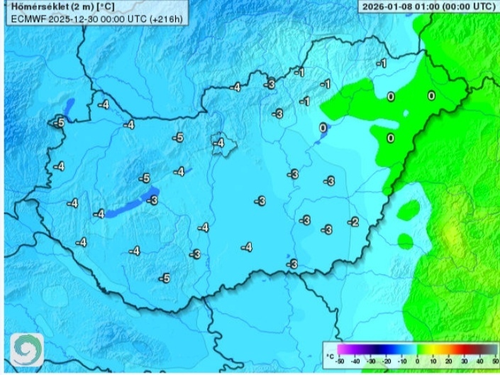 Hétfőn este melegfront érkezik, ami főként északra és keletre hoz csapadékot, zömében havat, de előfordul majd vegyes halmazállapotú csapadék is.