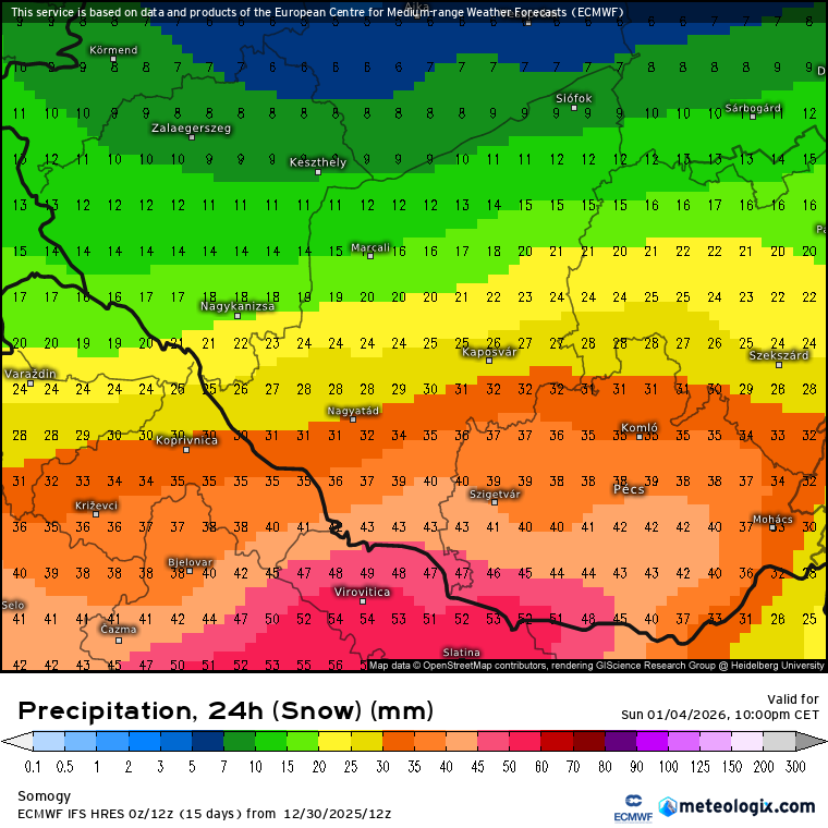 Hétfőn este melegfront érkezik, ami főként északra és keletre hoz csapadékot, zömében havat, de előfordul majd vegyes halmazállapotú csapadék is.