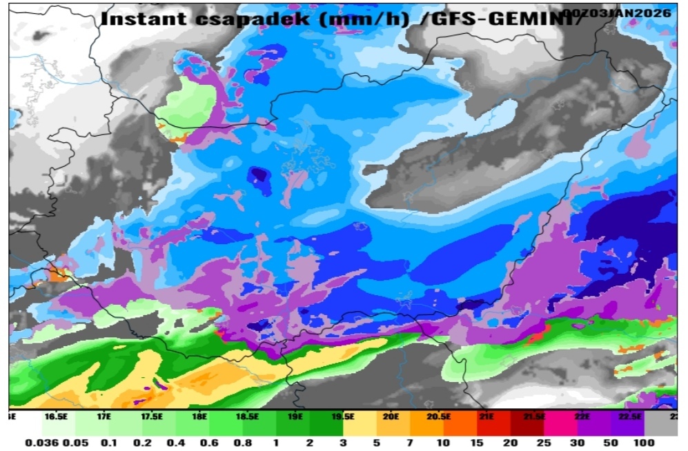 Hétfőn este melegfront érkezik, ami főként északra és keletre hoz csapadékot, zömében havat, de előfordul majd vegyes halmazállapotú csapadék is.