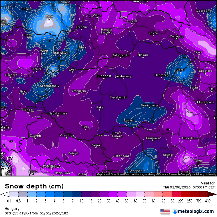 Hétfőn este melegfront érkezik, ami főként északra és keletre hoz csapadékot, zömében havat, de előfordul majd vegyes halmazállapotú csapadék is.
