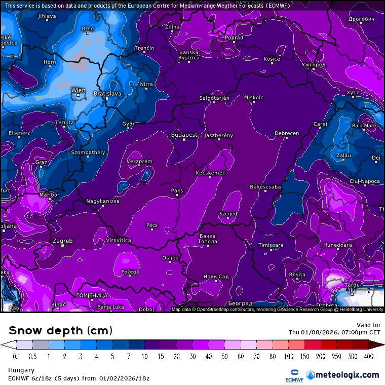 Hétfőn este melegfront érkezik, ami főként északra és keletre hoz csapadékot, zömében havat, de előfordul majd vegyes halmazállapotú csapadék is.